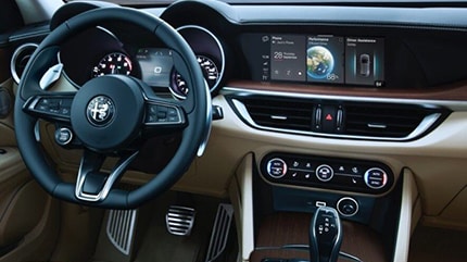 Does Alfa Romeo Stelvio Have Apple CarPlay®? The Alfa Romeo Stelvio has Apple CarPlay® and Android Auto® standard on every trim level, allowing you to connect your favorite apps for navigation, music, and more. The Stelvio puts the driver at the center of the universe. Everything from the available high-resolution 8.8-inch wide-screen infotainment system to the full-color 7-inch information display cluster is within easy reach. Utilizing state-of-the-art sensors, the Stelvio has Full-Speed Forward Collision Warning, alerting you of a potential collision or automatically stopping if needed. Find Competitive Alfa Romeo Price Offers and Get Connected, at Cincinnati North Alfa Romeo. | How Much Space Does Alfa Romeo Stelvio Have? The new Stelvio features an impressive 56.5 cubic feet with the rear seats folded and 18.5 cubic feet of cargo space with the rear seats up. The standard 40/20/40 split fold-down rear seat allows you to fit any of your cargo storage needs - more than enough space for work and adventure alike. Delivering a level of comfort that intensifies the overall driving experience; the all-new Alfa Romeo Stelvio features premium details including fine Italian leather with accent stitching. The available Alcantara® interior combinations truly reflect the pride of its Italian origins. Experience the Space of the Stelvio and Find Great Finance Price Rates at Cincinnati North Alfa Romeo. |