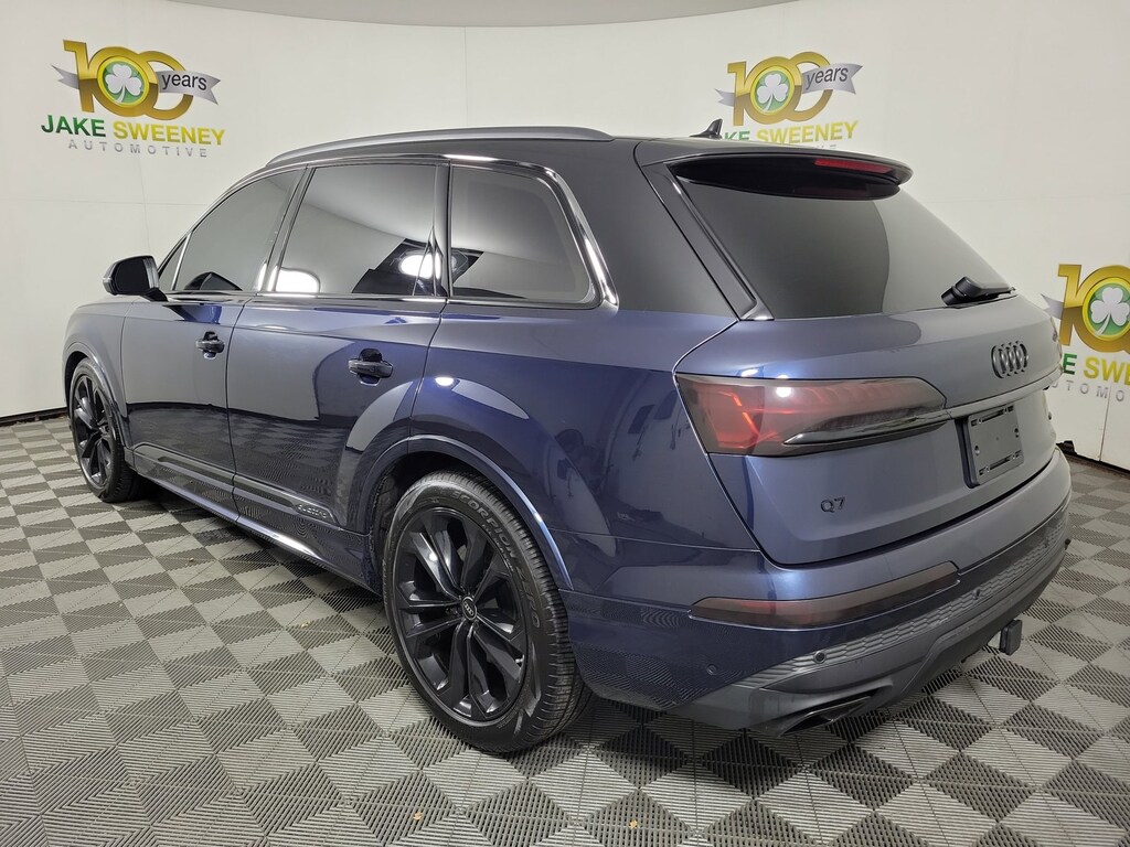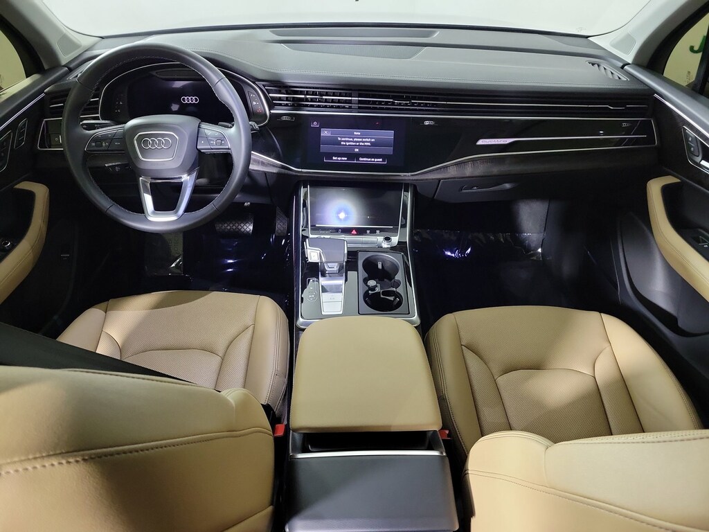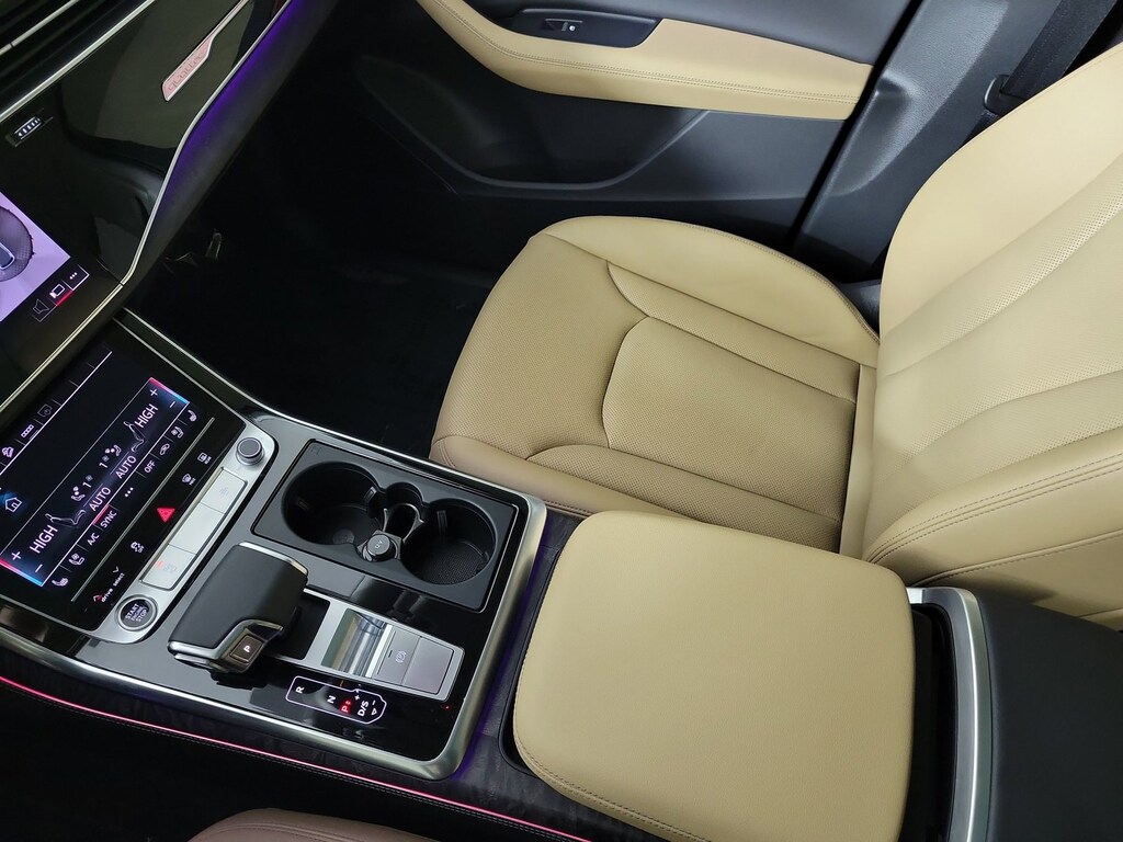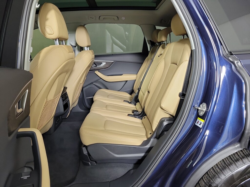 PREMIUM PLUS PACKAGE: LED Interior Lighting Package Plus, Heated Steering Wheel, Top View Camera System, virtual 360 view, Wireless Phone Charging Pad, Bang & Olufsen Premium Sound System w/3D Sound, Illuminated Door Sills, BLACK OPTIC PACKAGE: Black Exterior Trim, Black Grille, Black Roof Rails, Black Door Blades, Black Window Surrounds, Anthracite Gray Audi Rings, Dark Chrome Exhaust Tips, EXECUTIVE PLUS PACKAGE: Dual-Pane Acoustic Glass for Side Windows, Heated Rear Seats, Traffic Sign Recognition, Four-Zone Automatic Climate Control, Control Buttons in Gloss Black w/Haptic Feedback, Front Seats w/Ventilation, passenger 4-way power lumbar, Comfort Adaptive Air Suspension, Power Soft-Closing Doors, Rear Door/Side Windows & Tailgate Sunshades, TRAILER HITCH: 7,700 lbs towing capacity, 7-Pin Adapter, WAITOMO BLUE METALLIC, AUDI BEAM RINGS: lower door trim LED light displaying Audi logo (4 rings), Front and rear doors, PRIVACY TRUNK COVER, AUDI GUARD ALL-WEATHER MATS: front and rear set of 4 black rubber mats, Front set features Q7 logo, AUDI CARGO BOX: collapsible fabric storage box for trunk w/Audi rings logo, SAIGA BEIGE, LEATHER SEATING SURFACES.