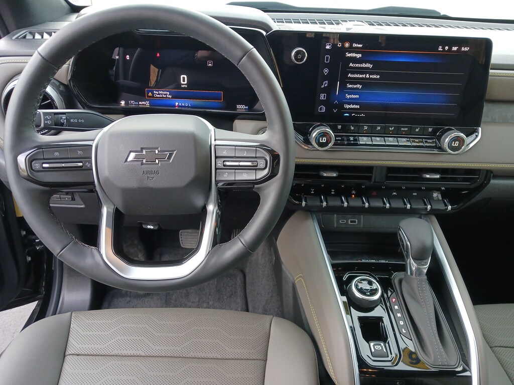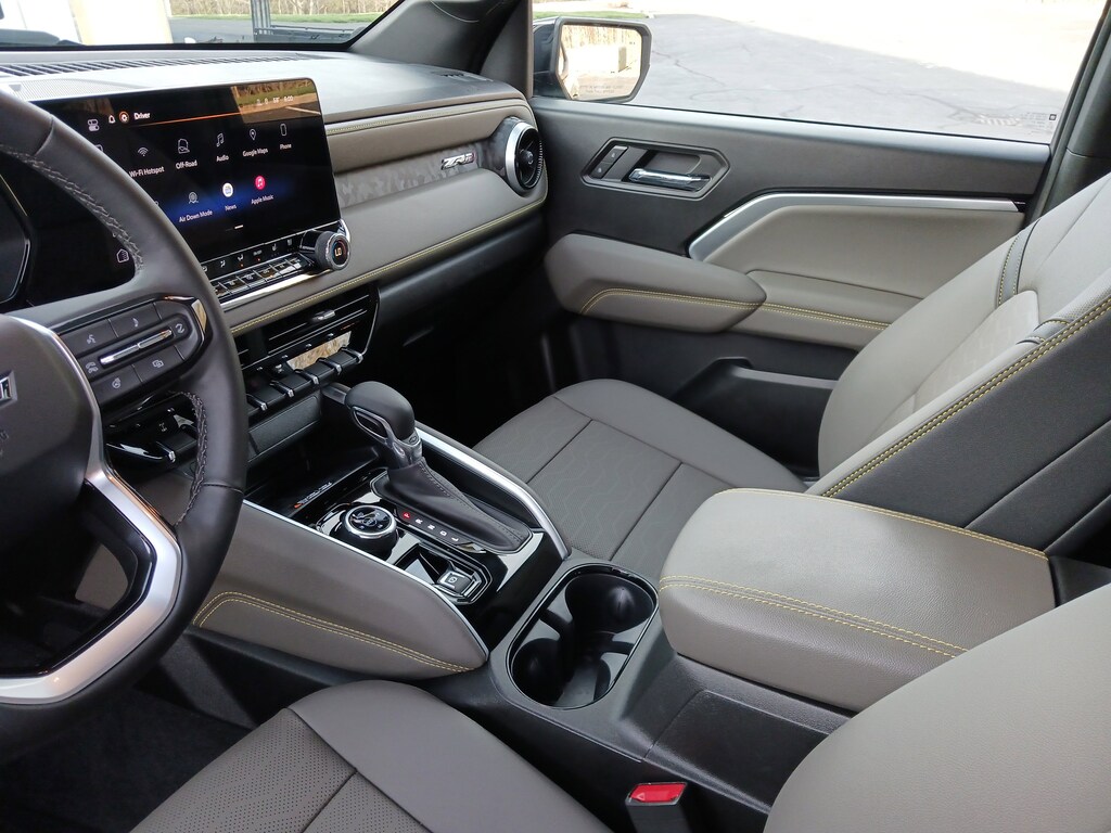 Our ZR2 cabin rewards you with heated cloth/Evotex front seats, eight-way power for the driver, a wrapped steering wheel, dual-zone automatic climate control, a sliding rear window, and remote start. Trail-friendly technology starts with an 11.3-inch touchscreen, an 11-inch driver display, Google Built-In, wireless Android Auto®/Apple CarPlay®, WiFi compatibility, Bluetooth®, and a six-speaker audio system.