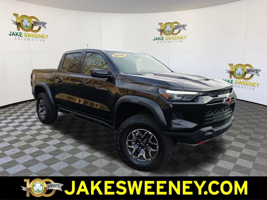 Take command of rugged terrain in our 2026 Chevrolet Colorado ZR2 Crew Cab 4X4 in Black, a trail-conquering truck equipped for serious off-road control and adventure. Powered by a 2.7L TurboMax offering 310hp to an 8 Speed Automatic transmission with multiple performance settings that include a dedicated Baja mode. This Four Wheel Drive truck also rides with driver-selectable, fully locking differentials, a 3-inch lift, and DSSV Multimatic dampers for off-road action, and it returns nearly 17mpg on the highway. Form follows function for our Colorado exterior, detailed by LED lighting, fog lamps, alloy wheels, off-road bumpers/fender flares, a spray-on bedliner, and a StowFlex tailgate.