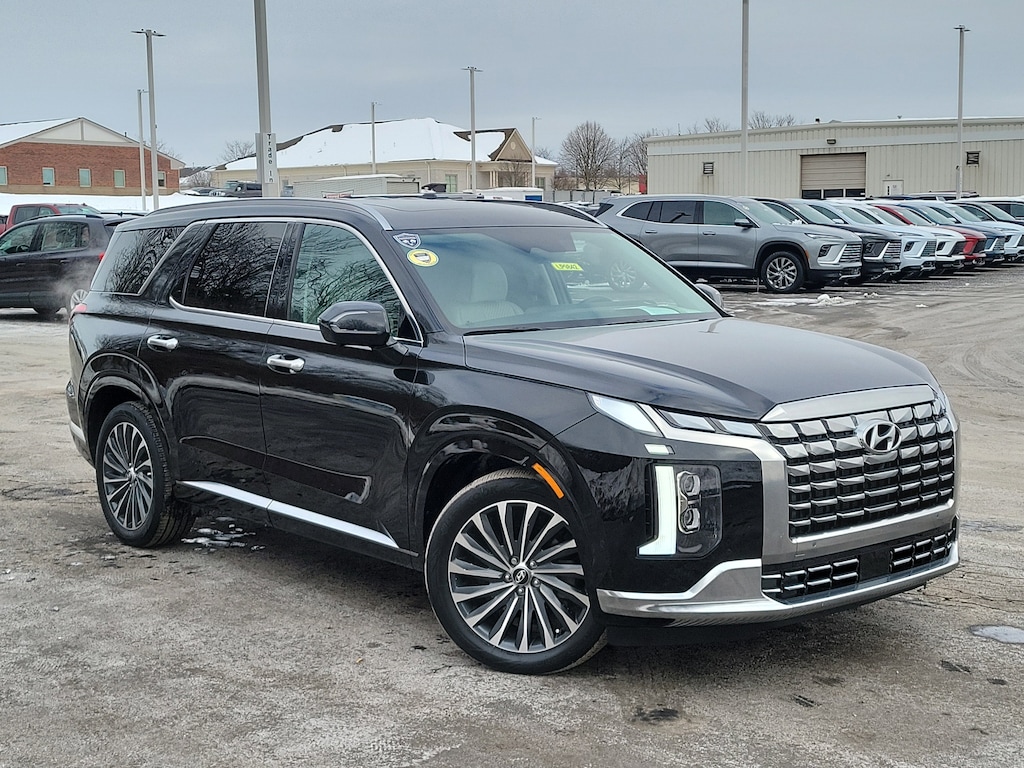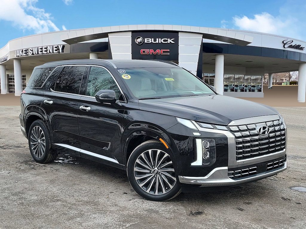 Have you ever wondered where to buy a Certified used car? Look no further! Jake Sweeney is here to Help. If you are in need of a new or used vehicle, we are offering you the ability to shop online and have your vehicle delivered to your home. Come visit us in store as well for a fun, fast, and easy car buying experience! Abyss Black Pearl 2024 Hyundai Palisade Calligraphy AWD 8-Speed Automatic with SHIFTRONIC V6 3rd row seats: split-bench, Apple CarPlay & Android Auto, Auto High-beam Headlights, Automatic temperature control, Brake assist, Delay-off headlights, Electronic Stability Control, Exterior Parking Camera Rear, Front Bucket Seats, Front Center Armrest, Fully automatic headlights, Garage door transmitter: HomeLink, Heated & Ventilated Front Bucket Seats, Heated steering wheel, Option Group 01, Power Liftgate, Power moonroof, Premium Nappa Leather Seat Trim, Radio data system, Radio: AM/FM/MP3 Premium Audio System, Rain sensing wipers, Rear audio controls, Rear window wiper, Reclining 3rd row seat, Telescoping steering wheel, Trip computer, Ventilated front seats, Ventilated rear seats.