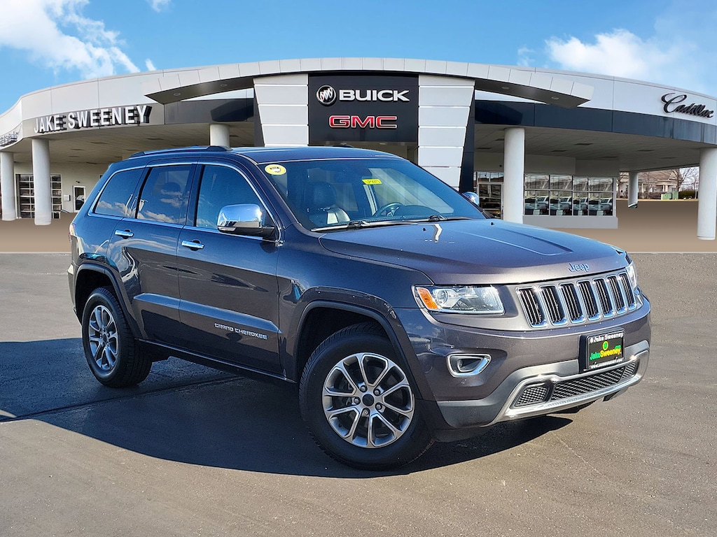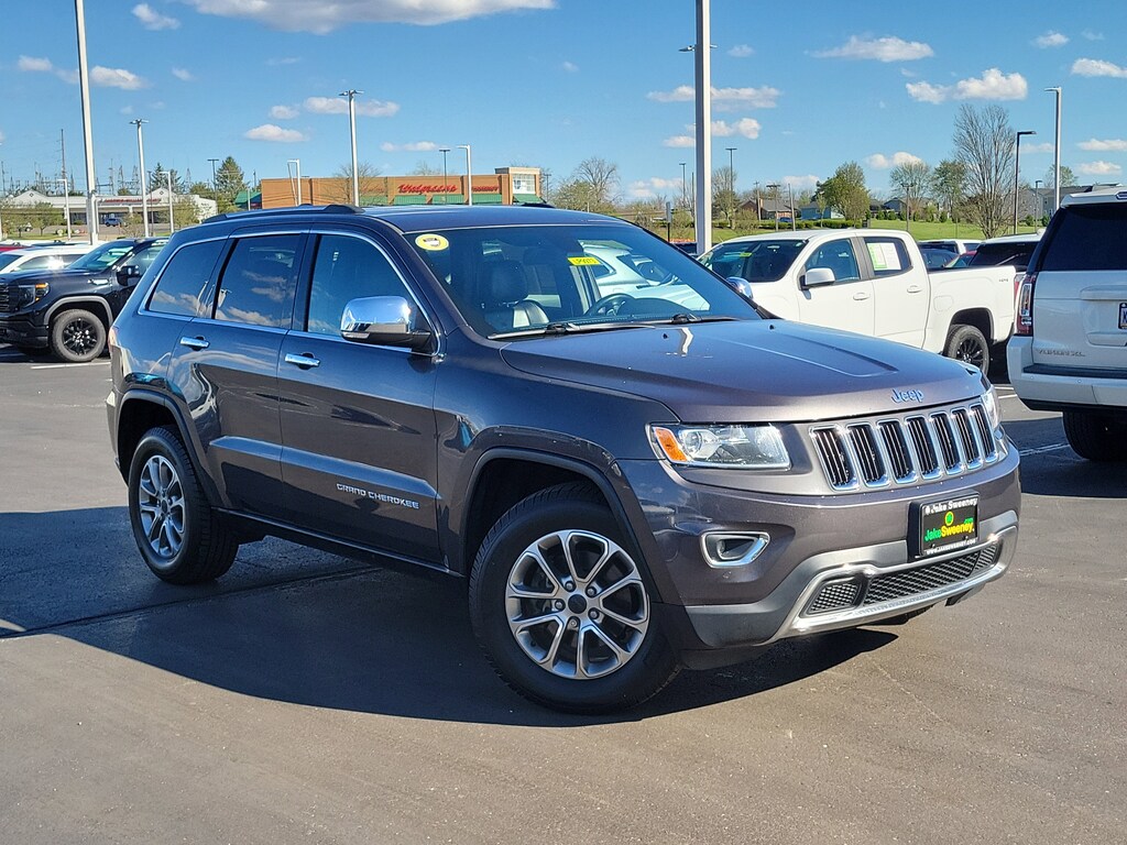 Have you ever wondered where to buy a Certified used car? Look no further! Jake Sweeney is here to Help. If you are in need of a new or used vehicle, we are offering you the ability to shop online and have your vehicle delivered to your home. Come visit us in store as well for a fun, fast, and easy car buying experience! Granite Crystal Metallic Clearcoat 2015 Jeep Grand Cherokee Limited 4WD 8-Speed Automatic 3.6L V6 24V VVT 4WD, 1 Year Trial (Registration Required), 1-Yr SiriusXM Traffic Service, 1-Yr SIRIUSXM Travel Link Service, 18" x 8.0" Aluminum Polished Wheels, 3.45 Rear Axle Ratio, 4-Wheel Disc Brakes, 6 Month Trial (Registration Required), 8.4" Touchscreen Display, ABS brakes, Air Conditioning, Alloy wheels, Anti-whiplash front head restraints, Audio memory, Auto-dimming door mirrors, Automatic temperature control, Bumpers: body-color, Delay-off headlights, Dual front impact airbags, Dual front side impact airbags, Electronic Stability Control, Exterior Parking Camera Rear, For Details Visit DriveUconnect.com, Front dual zone A/C, Front fog lights, Fully automatic headlights, GPS Antenna Input, GPS Navigation, HD Radio, Heated door mirrors, High Pressure Tires Tracking, Integrated Voice Command w/Bluetooth, Memory seat, Outside temperature display, Overhead console, Passenger vanity mirror, Power door mirrors, Power Liftgate, Power steering, Quick Order Package 23H, Radio data system, Radio: Uconnect 5.0, Radio: Uconnect 8.4 NAV, Rear Parking Sensors, Rear reading lights, Rear seat center armrest, Rear window wiper, Rear-View Auto-Dimming Mirror w/Microphone, Roadside Assistance & 9-1-1 Call, Roof rack: rails only, SIRIUSXM Traffic, SiriusXM Travel Link, Speed-Sensitive Wipers, Spoiler, Tilt steering wheel, Turn signal indicator mirrors, Uconnect Access, Uconnect Access (RA4), Variably intermittent wipers.