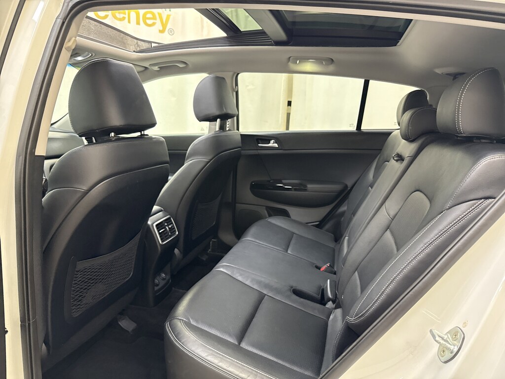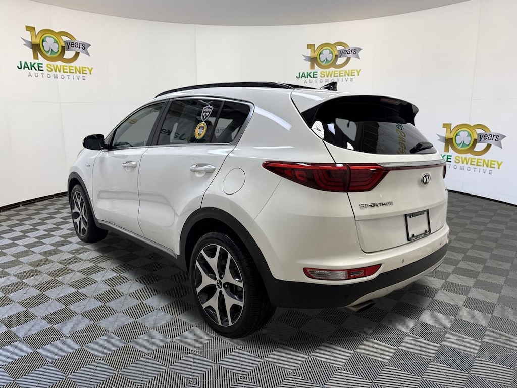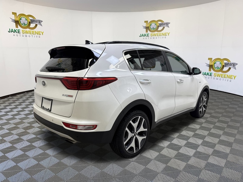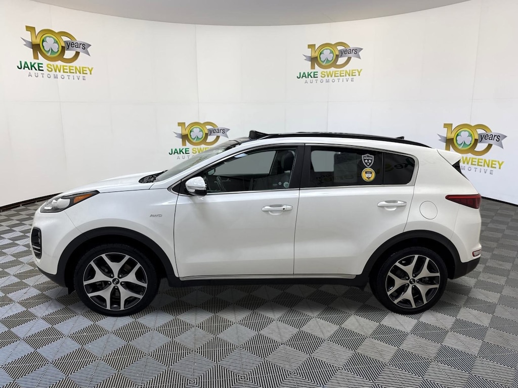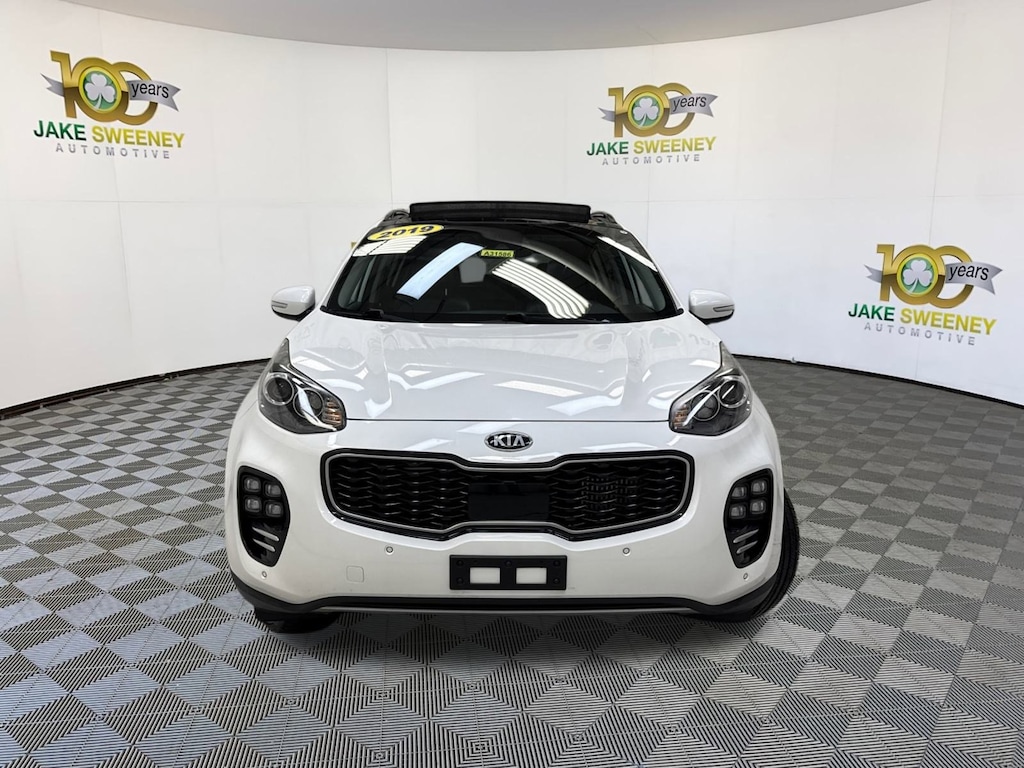 Sleek and sporty, our 2019 Kia Sportage SX Turbo AWD is ready to show off in bold Snow White Pearl finish! Powered by a TurboCharged 2.0 Liter 4 Cylinder that offers 240hp while paired with a Sportmatic 6 Speed Automatic transmission. Our All Wheel Drive Sportage SX Turbo has the rock-solid stance you desire with its bright chrome accents, rear spoiler, panoramic sunroof, and smart power lift-gate.