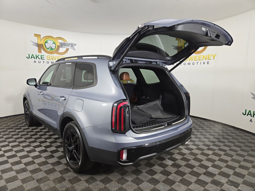 Focused on families, our 2024 Kia Telluride SX Prestige X-Line AWD is a satisfying machine that looks fantastic in Everlasting Silver! Powered by a 3.8 Liter V6 delivering 291hp to an 8 Speed Automatic transmission with Drive Mode Select. This All Wheel Drive SUV also features a self-leveling rear suspension and center-locking differential for advanced capability, and it achieves nearly 24mpg on the highway. A premium presence, our Telluride treats you to dual sunroofs, LED lighting, fog lamps, 20-inch gloss-black wheels, a hands-free liftgate, sunroof, high-utility roof rails, and aggressive X-Line details.