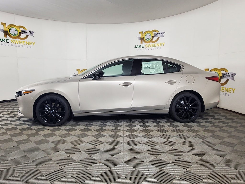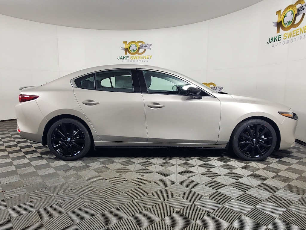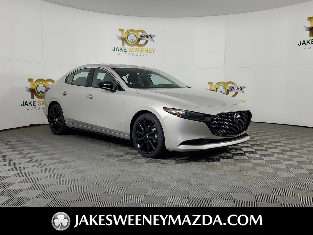 Our 2025 Mazda3 2.5 Turbo Premium Plus Sedan AWD adds dynamic performance to its dramatic Platinum Quartz Metallic design! Powered by a TurboCharged 2.5 Liter 4 Cylinder serving up 250hp to a paddle-shifted 6 Speed Automatic transmission for aggressive acceleration. This All Wheel Drive sedan also handles the road ahead with remarkable confidence, and it scores nearly 32mpg on the highway. Well worth seeing in person, our Mazda3 boasts signature LED lighting, adaptive front lighting, a power sunroof, black heated power mirrors, and Black Metallic alloy wheels.