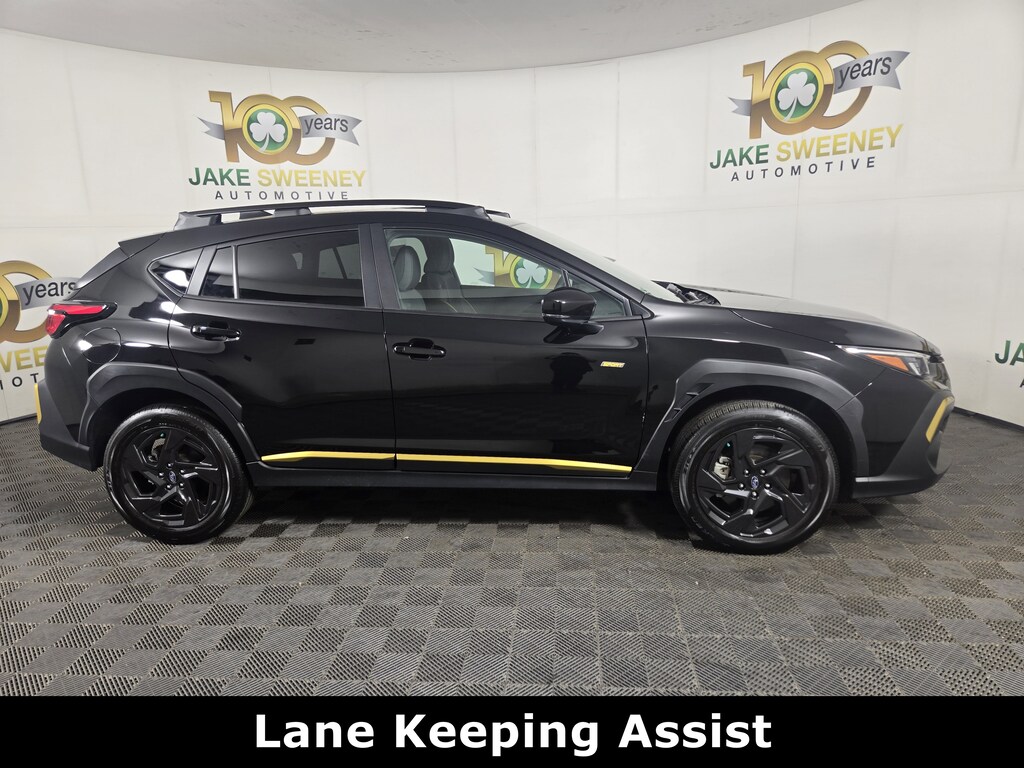 Our 2024 Subaru Crosstrek Sport AWD is fun to drive with a dynamic Crystal Black Silica design! Motivated by a 2.5 Liter BOXER 4 Cylinder providing 182hp to a paddle-shifted CVT for enhanced athleticism. This All Wheel Drive SUV is ready to run the trails with standard X-MODE, and it sees nearly 34mpg on the highway. Here to help you explore your world in style, our Crosstrek shows off adaptive LED headlights, fog lamps, rear roof spoiler, roof rails, 18-inch alloy wheels, bold body cladding, and gloss-black mirror caps.