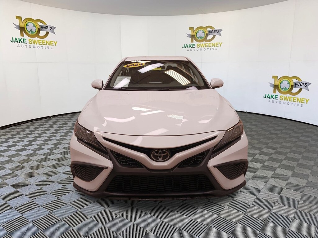 Our sporty One Owner, No Accidents Reported 2024 Toyota Camry SE Sedan has a flair for fun in Ice Cap! Powered by a 2.5 Liter Dynamic Force 4 Cylinder offering 203hp tethered to a paddle-shifted 8 Speed Automatic transmission for a more athletic approach to driving. A sport-tuned suspension helps tighten your grip on the road, and this Front Wheel Drive sedan achieves nearly 39mpg on the highway. Our Camry's high-profile design demands attention with an aggressive black grille, LED lighting, prominent rocker panels, black alloy wheels, a rear spoiler, and chrome-tipped dual exhaust outlets.