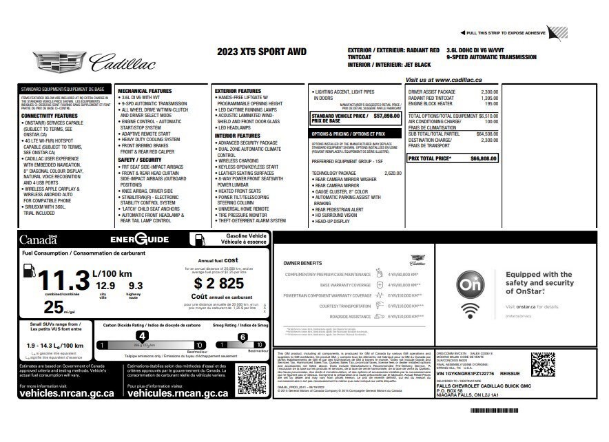Jake Sweeney Is Here to Help! If you are in need of a new or used vehicle, we are offering you the ability to shop online and have your vehicle delivered to your home. Radiant Red Tintcoat 2023 Cadillac XT5 Sport AWD 9-Speed Automatic 3.6L V6 DI VVTRecent Arrival! Odometer is 6489 miles below market average!