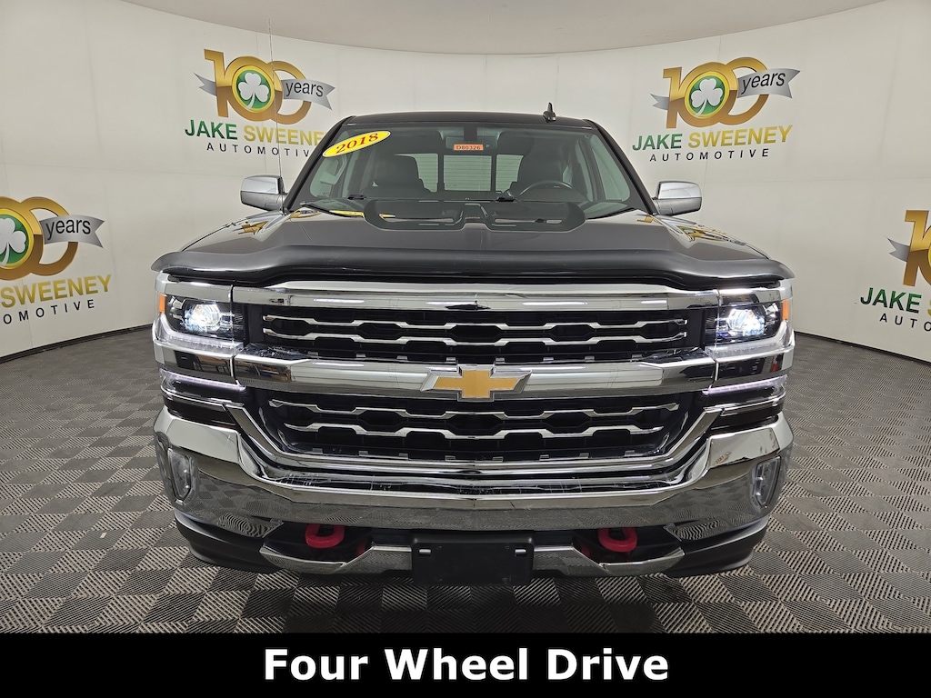 Jake Sweeney Is Here to Help! If you are in need of a new or used vehicle, we are offering you the ability to shop online and have your vehicle delivered to your home. Black 2018 Chevrolet Silverado 1500 LTZ 1LZ 4WD 6-Speed Automatic Electronic with Overdrive EcoTec3 5.3L V8 6-Speed Automatic Electronic with Overdrive, 4WD, Jet Black Leather, 110-Volt AC Power Outlet, 150 Amp Alternator, 4.2" Diagonal Color Display Driver Info Center, 6 Speaker Audio System, Auto-Dimming Inside Rear-View Mirror, Auxiliary External Transmission Oil Cooler, Bluetooth® For Phone, Chevrolet Connected Access, Chevrolet w/4G LTE, Chrome Bodyside Moldings, Chrome Cap Power-Adjustable Heated Outside Mirrors, Chrome Door Handles, Chrome Grille Surround, Chrome Mirror Caps, Color-Keyed Carpeting w/Rubberized Vinyl Floor Mats, Deep-Tinted Glass, Driver & Front Passenger Illuminated Vanity Mirrors, Dual-Zone Automatic Climate Control, Electric Rear-Window Defogger, EZ Lift & Lower Tailgate, Front Chrome Bumper, Front Frame-Mounted Black Recovery Hooks, HD Radio, Heavy-Duty Rear Locking Differential, Leather Wrapped Steering Wheel w/Cruise Controls, LED Taillamps w/Signature, Manual Tilt/Telescoping Steering Column, Navigation System, OnStar & Chevrolet Connected Services Capable, Power Sliding Rear Window w/Defogger, Power Windows w/Driver Express Up, Preferred Equipment Group 1LZ, Rear 60/40 Folding Bench Seat (Folds Up), Rear Chrome Bumper, Rear Wheelhouse Liners, Remote Keyless Entry, Remote Locking Tailgate, Remote Vehicle Starter System, Single Slot CD/MP3 Player, Steering Wheel Audio Controls, Theft Deterrent System (Unauthorized Entry), Thin Profile LED Fog Lamps, Trailering Package, Universal Home Remote.