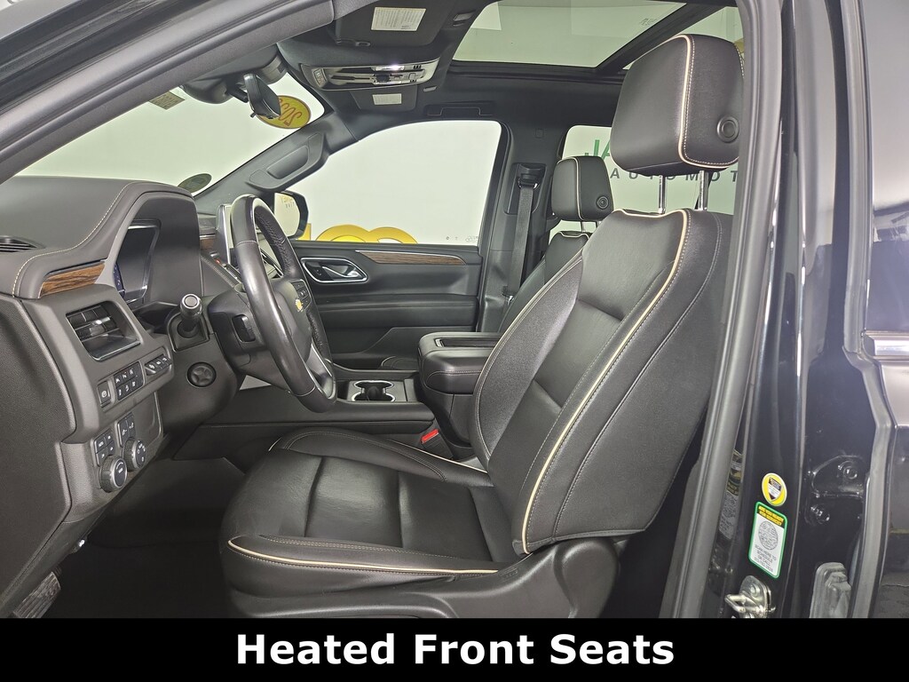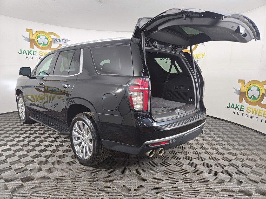 Jake Sweeney Is Here to Help! If you are in need of a new or used vehicle, we are offering you the ability to shop online and have your vehicle delivered to your home. Black 2023 Chevrolet Tahoe Premier 4WD 10-Speed Automatic with Overdrive EcoTec3 5.3L V8 REMAINDER OF FACTORY WARRANTY, LIFETIME POWERTRAIN WARRANTY, SUNROOF, 4WD, Jet Black Leather, 15" Diagonal Multi-Color Head-Up Display, 1st & 2nd Row Color-Keyed Carpeted Floor Mats, 2-Speed Active Electronic AutoTrac Transfer Case, 3rd Row 60/40 Power-Folding Split-Bench Seat, Auto-Dimming Inside Rear-View Mirror, Bose 10-Speaker Centerpoint Surround Audio Sys Ft, Bright Front & Rear Door Sill Plates, Chrome Door Handles w/Body-Color Strip, Chrome Mirror Caps, Color-Keyed Carpeting Floor Covering, Driver & Front Outboard Passenger Airbags, Dual Exhaust System, Enhanced Display & Alert Package, Enhanced Driver Information Center, Floor Console, Hands-Free Rear Power Programmable Liftgate, HD Surround Vision, Heated 2nd Row Outboard Seats, Heated Steering Wheel, Hill Descent Control, Infotainment Display, Inside Rearview Auto-Dimming Rear Camera Mirror, Lane Change Alert w/Side Blind Zone Alert, LED Daytime Running Lamps, Memory Settings, Outside Heated Power-Adjustable Mirrors, Power Release 2nd Row Bucket Seats, Power Tilt & Telescopic Steering Column, Preferred Equipment Group 1LZ, Rear Camera Mirror Washer, Rear Cross Traffic Alert, Rear Pedestrian Alert, Remote Start, Safety Alert Seat, Set of 4 Wheel Locks (LPO), SiriusXM Radio w/360L, Universal Home Remote, Wheels: 22" x 9" Polished Aluminum (RVA), Wireless Charging, Wrapped Steering Wheel.