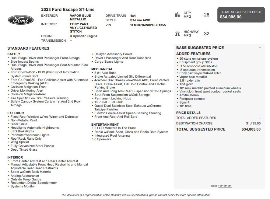 Jake Sweeney Is Here to Help! If you are in need of a new or used vehicle, we are offering you the ability to shop online and have your vehicle delivered to your home. Vapor Blue 2023 Ford Escape ST-Line AWD 8-Speed Automatic 1.5L EcoBoost AWD.