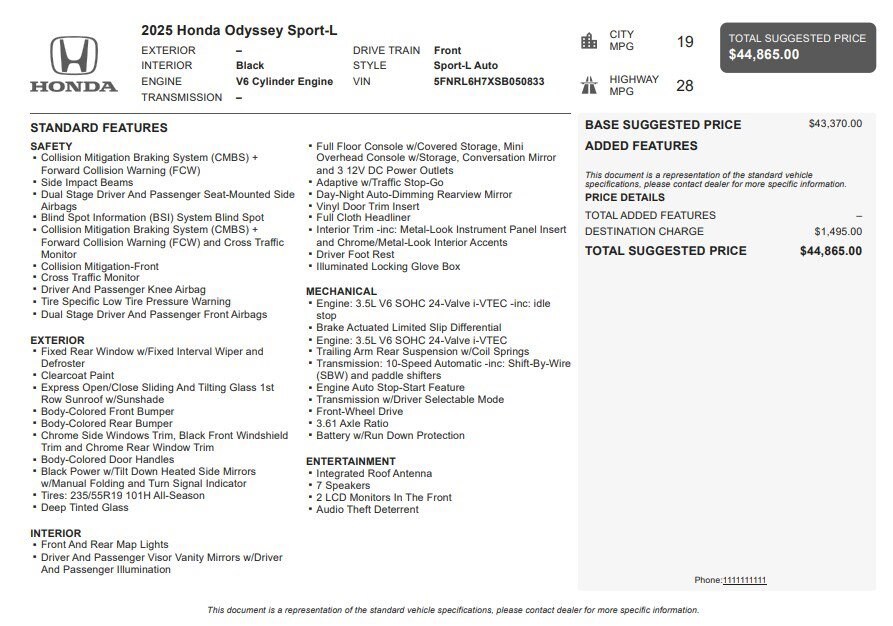 Jake Sweeney Is Here to Help! If you are in need of a new or used vehicle, we are offering you the ability to shop online and have your vehicle delivered to your home. White 2025 Honda Odyssey Sport-L FWD 10-Speed Automatic 3.5L V6 SOHC i-VTEC 24V