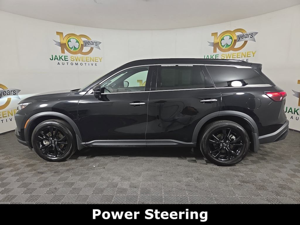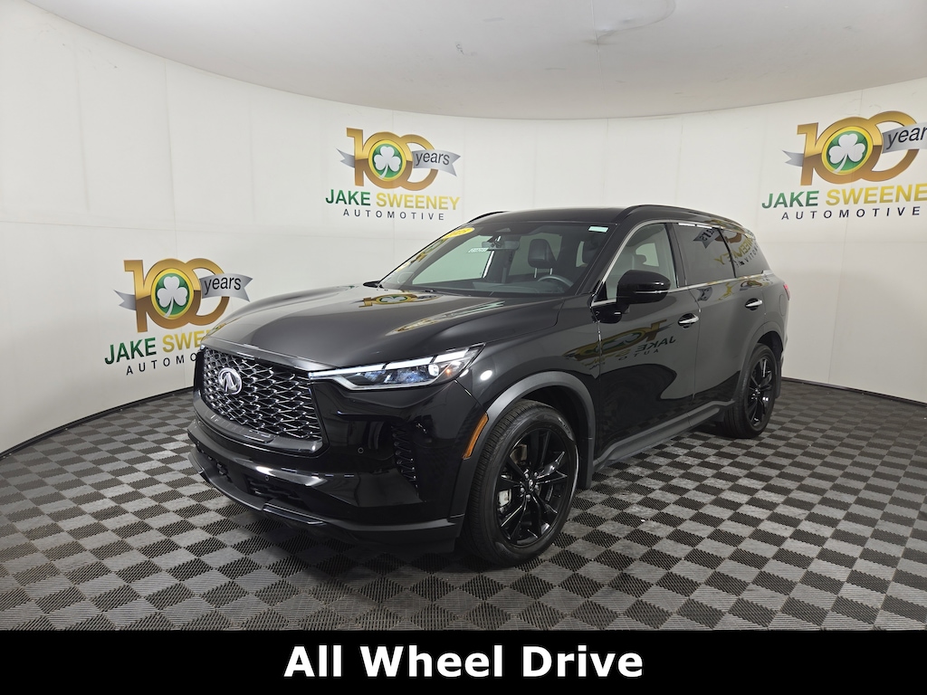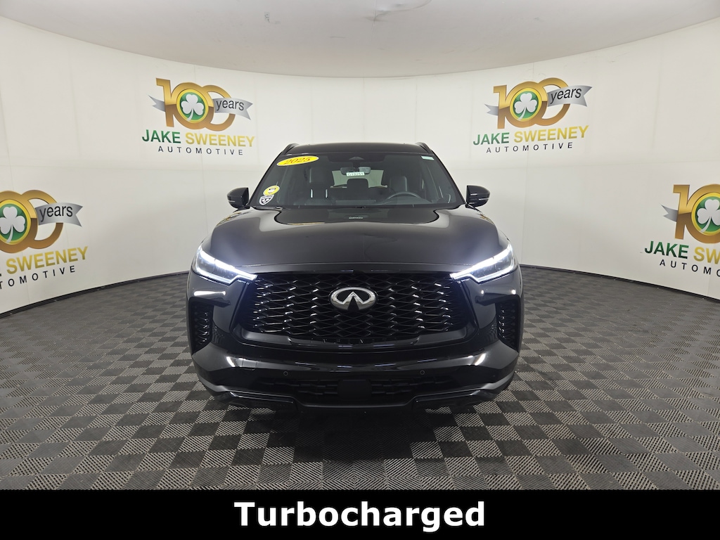 Jake Sweeney Is Here to Help! If you are in need of a new or used vehicle, we are offering you the ability to shop online and have your vehicle delivered to your home. Mineral Black 2025 INFINITI QX60 LUXE AWD 9-Speed Automatic 2.0L I4 Turbocharged DOHC 16V LEV3-ULEV50 268hp REMAINDER OF FACTORY WARRANTY, LIFETIME POWERTRAIN WARRANTY, LEATHER SEATS, Illuminated Kick Plate with Pass-Through Light, BLACK EDITION.