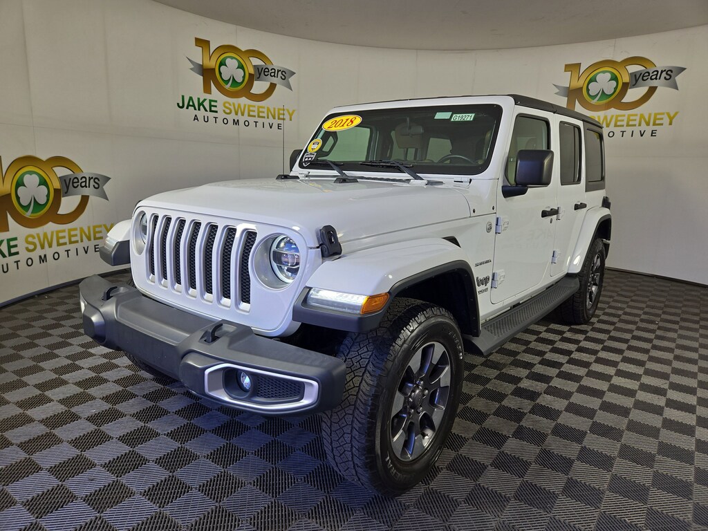 Jake Sweeney Is Here to Help! If you are in need of a new or used vehicle, we are offering you the ability to shop online and have your vehicle delivered to your home. Bright White Clearcoat 2018 Jeep Wrangler Unlimited Sahara 4WD 8-Speed Automatic 3.6L V6 24V VVT LIFETIME POWERTRAIN WARRANTY, #1 Seat Foam Cushion, Alpine Premium Audio System, Black 3-Piece Hard Top, Cold Weather Group, Daytime Running Lamps LED Accents, Freedom Panel Storage Bag, Front LED Fog Lamps, Heated Front Seats, Heated Steering Wheel, Leather Trimmed Seats w/Sahara Logo, Leather Wrapped Park Brake Handle, Leather Wrapped Shift Knob, LED Lighting Group, LED Reflector Headlamps, LED Taillamps, Premium Wrapped I/P Bezels, Quick Order Package 24G, Rear Window Defroster, Rear Window Wiper/Washer, Wheels: 18" x 7.5" Tech Gray Polished Face.Recent Arrival! Odometer is 9001 miles below market average!Awards:* 2018 KBB.com 10 Most Awarded Brands